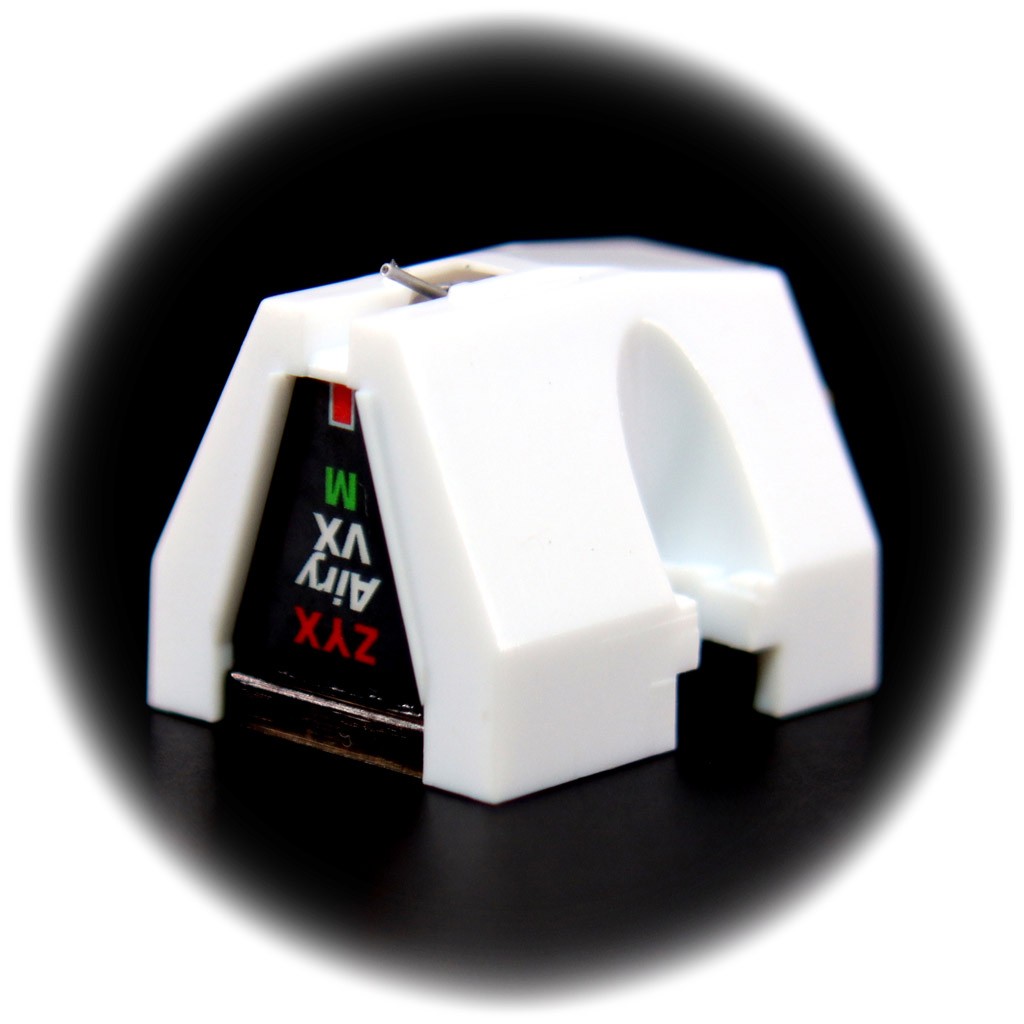 - stilo in solido diamante nudo con taglio sferico rifinito a specchio e raggio della punta di 1,0 mil, i cui bordi sono disposti parallelamente ai lati del cantilever, cosicché l'asse più duro del cristallo sia allineato e funga da punto di contatto con i solchi del disco, assicurando una tracciatura stabile e fluida e un'usura del diamante nettamente inferiore, tale da prolungare la longevità dello stilo di oltre 10 volte rispetto a design più convenzionali;