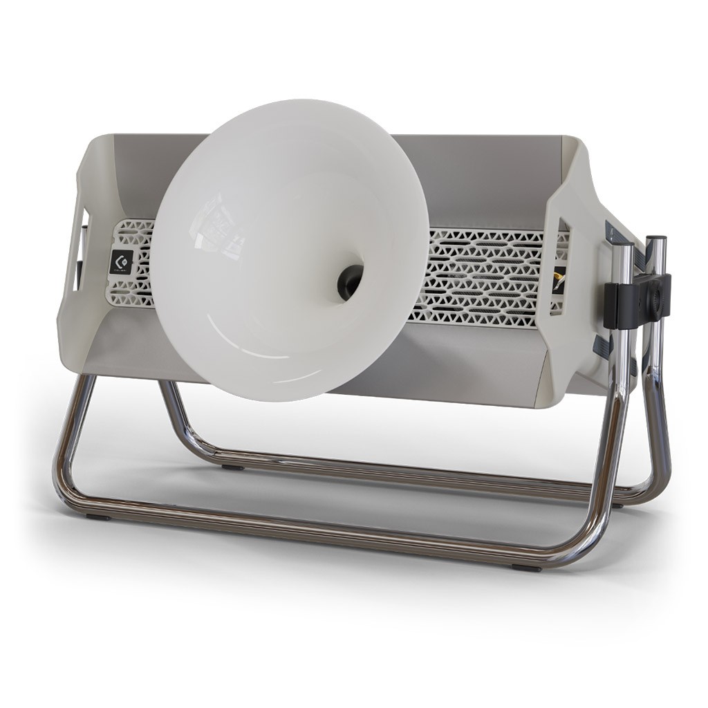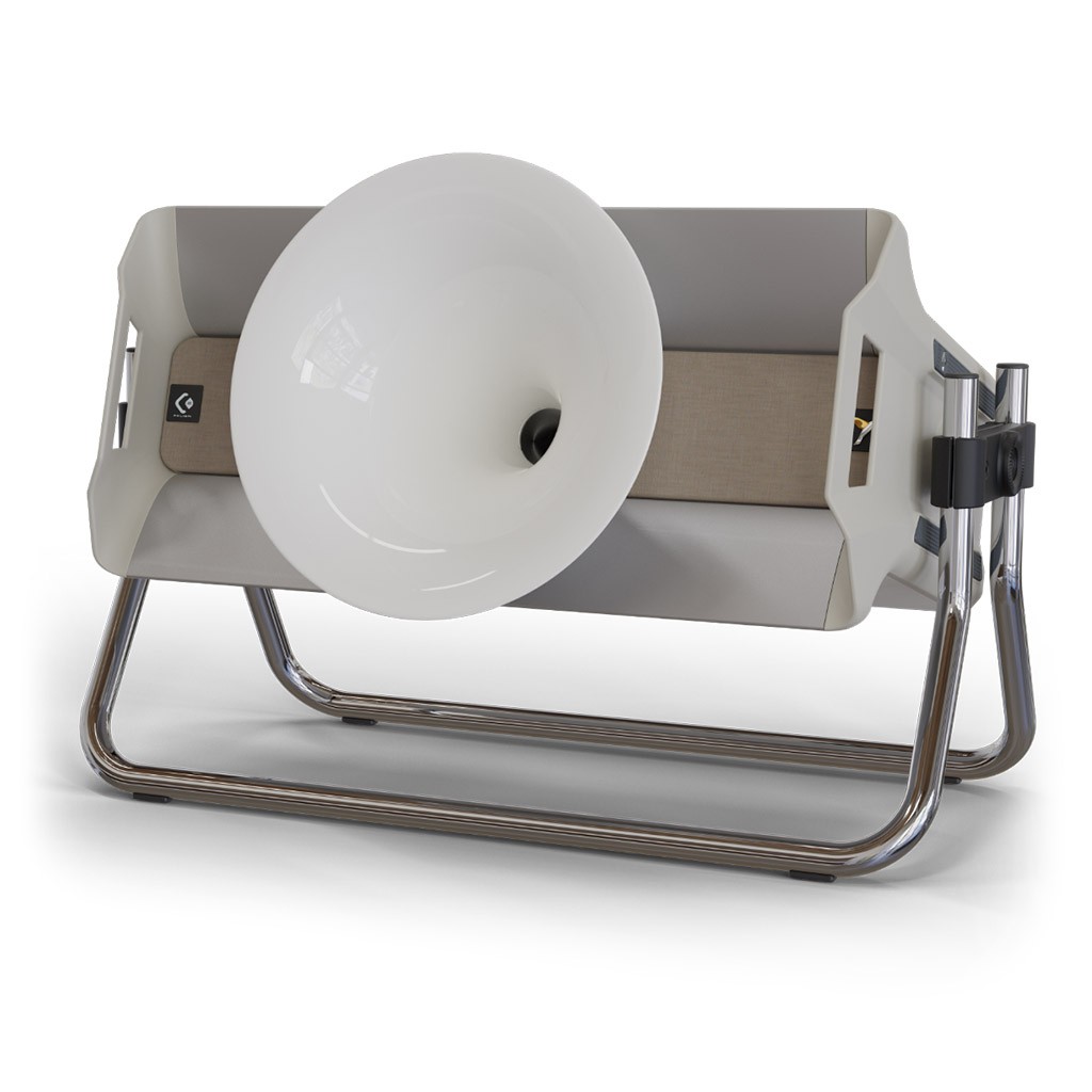 - griglia opzionale in tessuto di colore nero o beige naturale, collocabile dietro alla tromba sferica a copertura della griglia a motivo ottagonale (prezzo € 125,00 IVA inclusa) e staffa nera o bianca per installazione a parete (prezzo € 360,00 IVA inclusa) ordinabili su specifica richiesta;