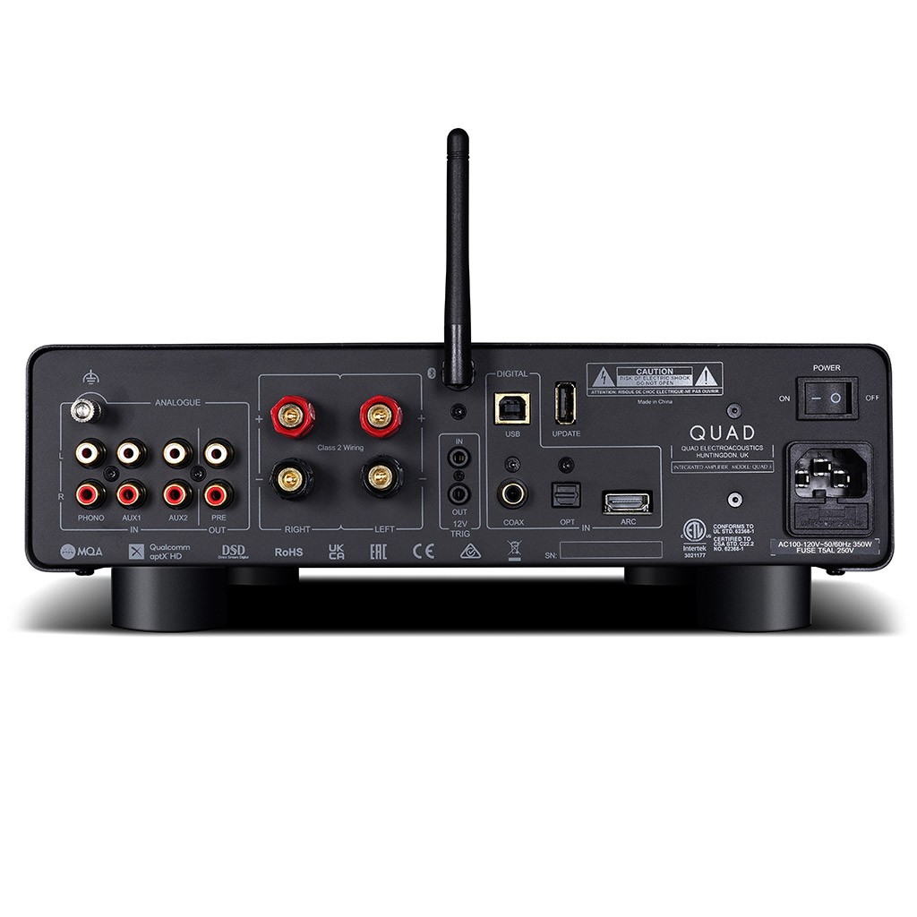 Amplificatore integrato a stato solido in Classe AB da 65 Watt per canale su 8 Ohm (100 Watt per canale su 4 Ohm), rivisitazione fedele e tecnologicamente aggiornata degli inconfondibili e leggendari preamplificatori QUAD 22 e QUAD 33, rispettivamente commercializzati nel 1961 e nel 1967;